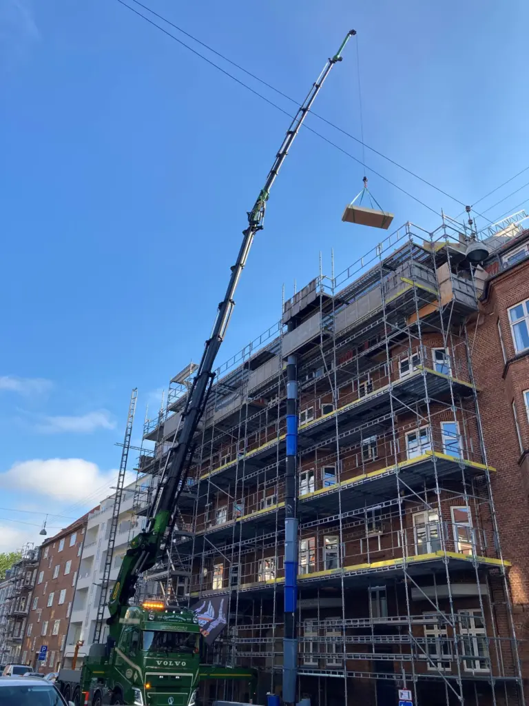 Vores kranbiler er topmoderne og vores rutinerede mandskab hører i særklasse til blandt landets bedste. Vores kranbiler er tilpasset, især byggeindustriens behov, såsom håndtering af vindues- og facadeelementer.